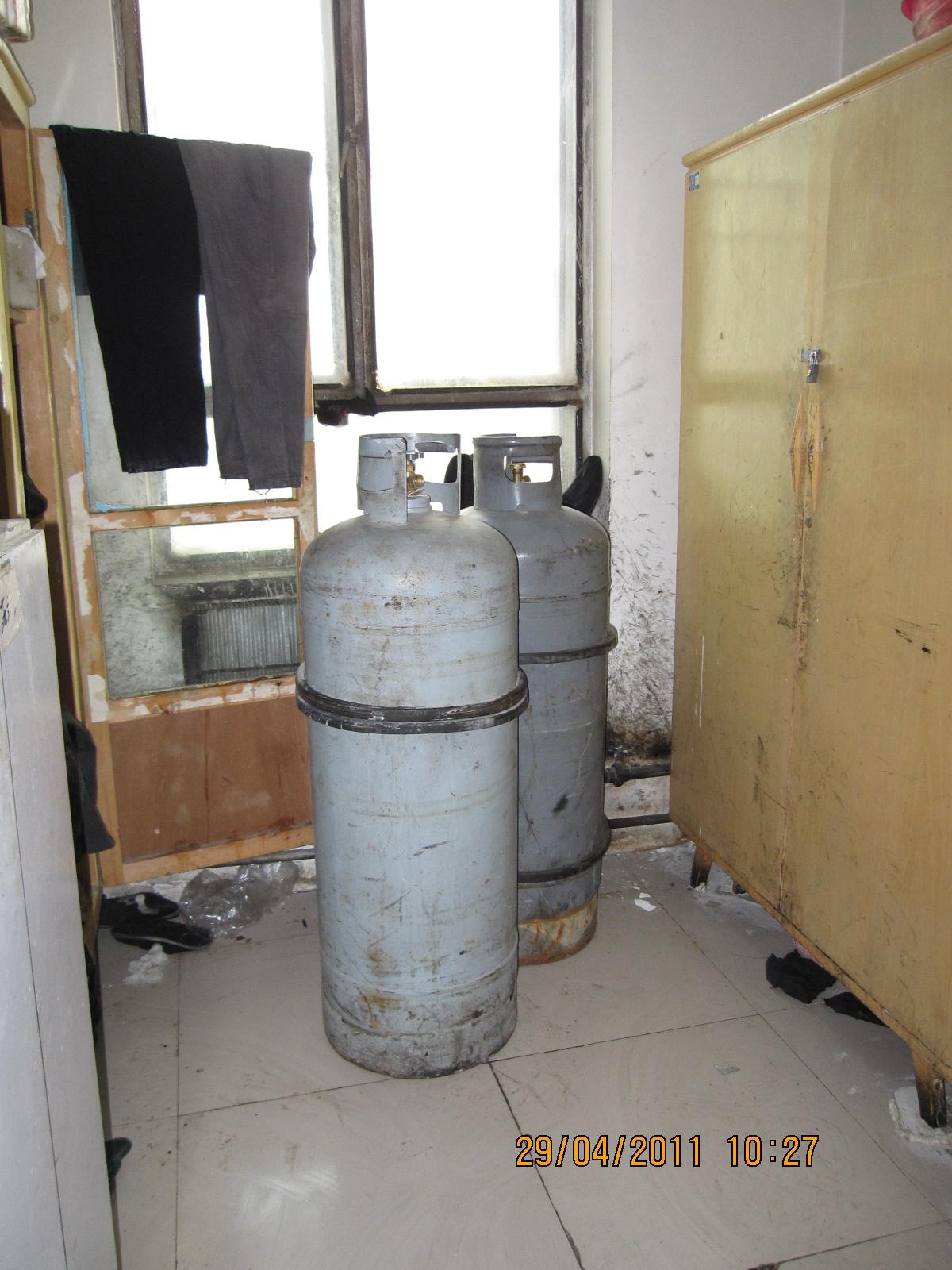 燃气罐放置在更衣室内